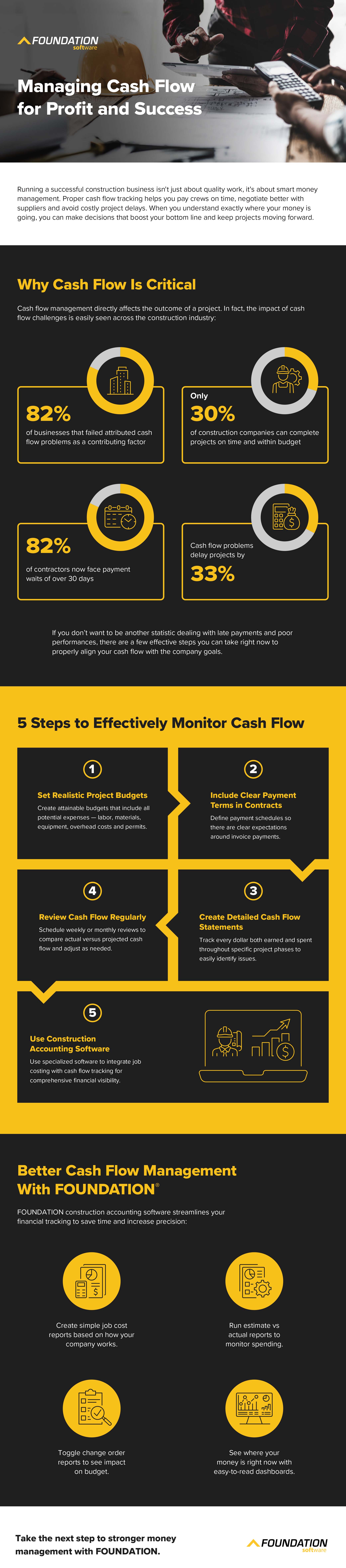 Consistent cash flow management remains essential in the construction industry, where cash flow fluctuations can quickly create significant financial challenges: